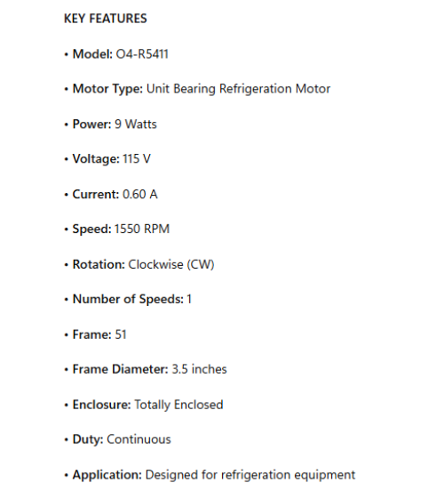 04-R5411, UNIT BEARING MOTOR, 9W, 1550 RPM, 115V, .53 A, TYPE SP, Foot Mounted is backordered and will ship as soon as it is back in stock.