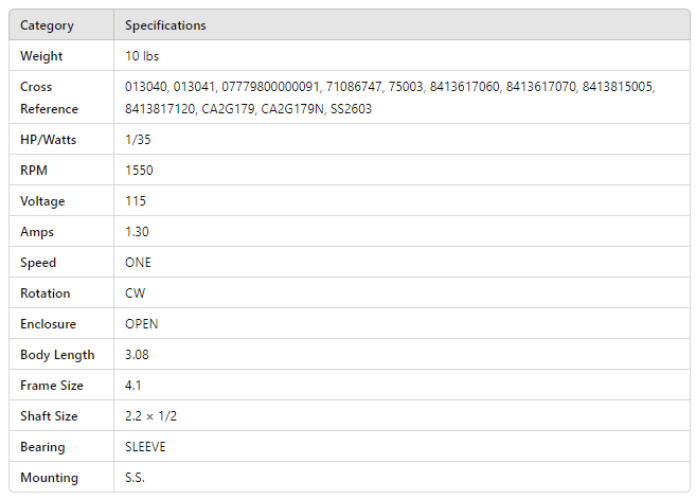 M3-R2603, Rotom 4.1″ Diameter Mtor 1/35HP. 1550RPM CW is backordered and will ship as soon as it is back in stock.