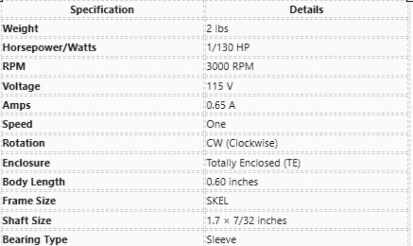 R7-RB11, Rotom, 1/130 Hp, 3000 Rpm, 115 Volts, Skel, Totally Enclosed,