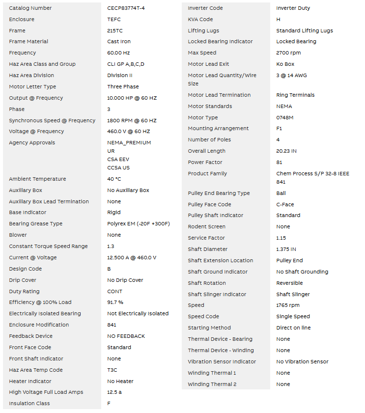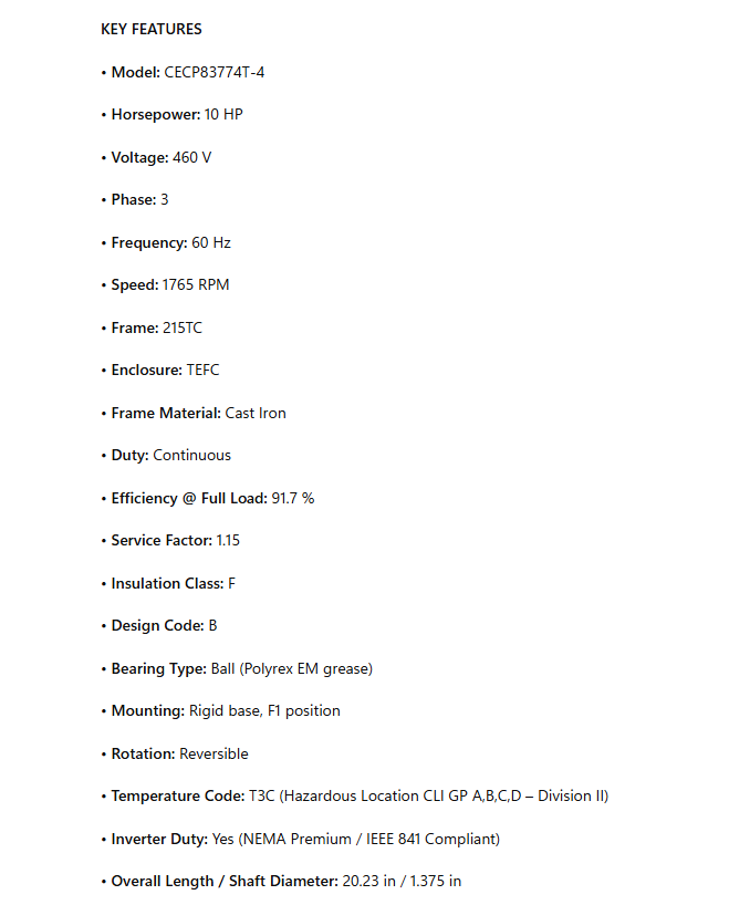Inverter Duty: Yes (NEMA Premium / IEEE 841 Compliant)