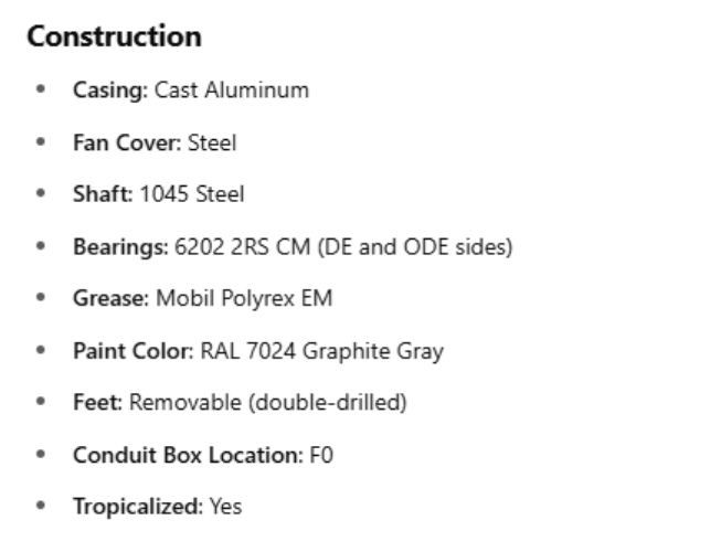 • Enclosure: TEFC (Totally Enclosed Fan Cooled)