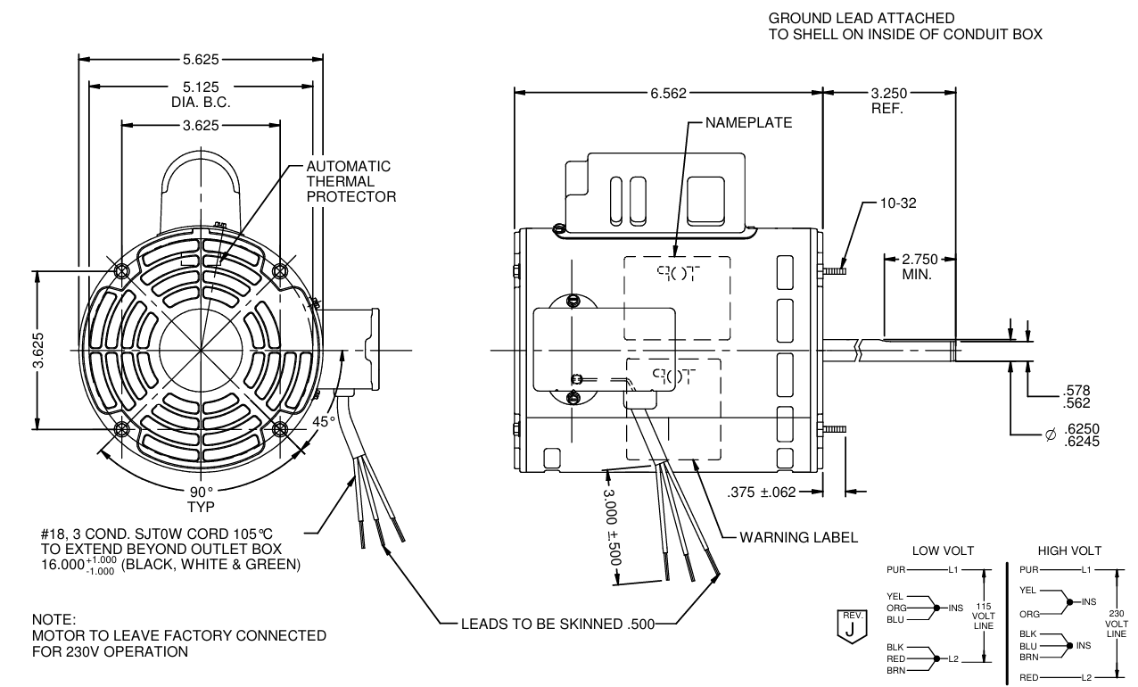 4748, Centrifugal Ventilation Direct Drive Blower, 1/2Hp, 1650 RPM, 115/230V, K055EPL7463024B