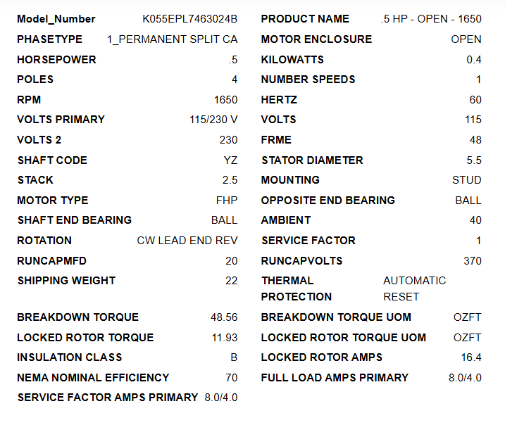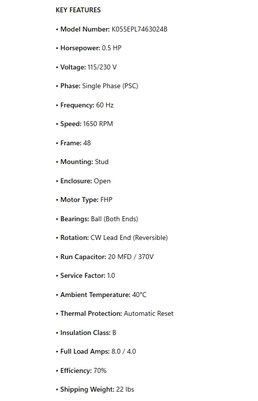 4748, Centrifugal Ventilation Direct Drive Blower, 1/2Hp, 1650 RPM, 115/230V, K055EPL7463024B is backordered and will ship as soon as it is back in stock.
