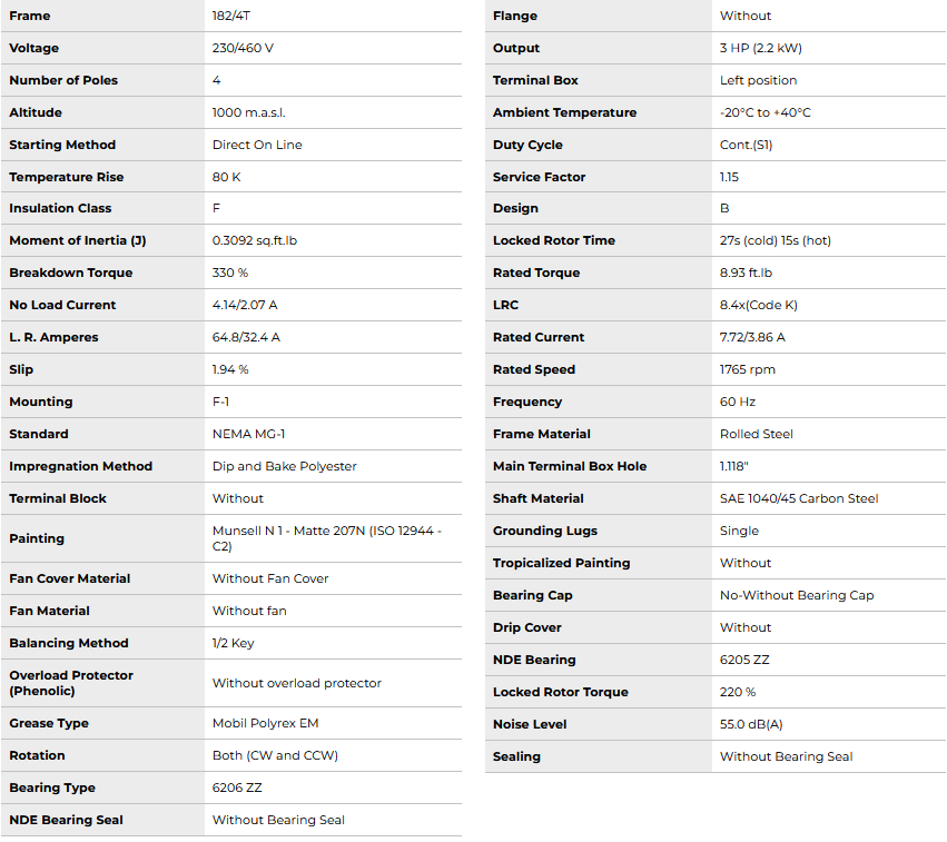 DP003404NPW01, Rolled Steel NEMA Premium Efficiency 3Hp 1765 Rpm 4P 182/4T 3Ph 230/460//190-220/380-415 V 60 Hz IC01 - ODP - Foot-mounted