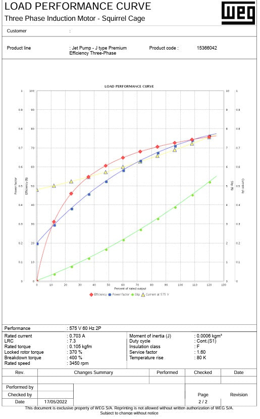Voltage | 575 V , 1/2 hP, 037 kW, |