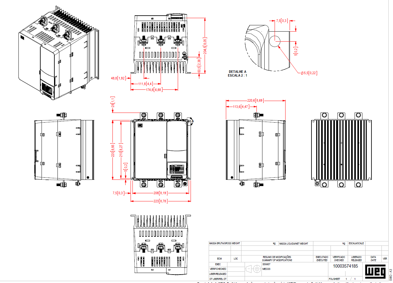 SSW070171T5SZ,SoftStart, 150Hp,220-575V, 171 Amps, 10233130, Weg, IP00