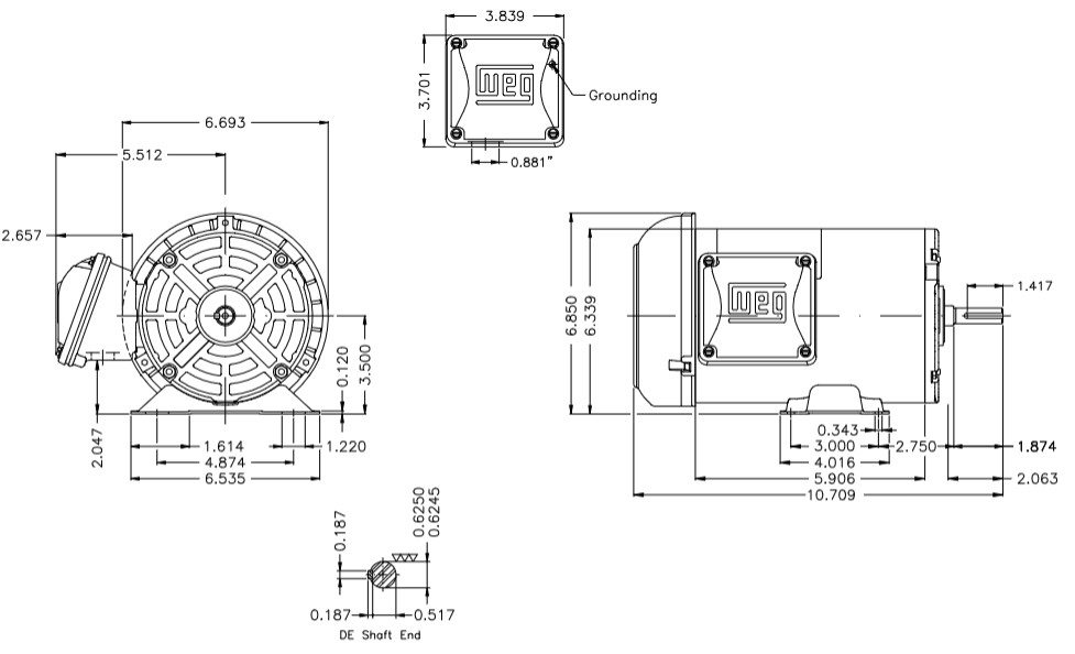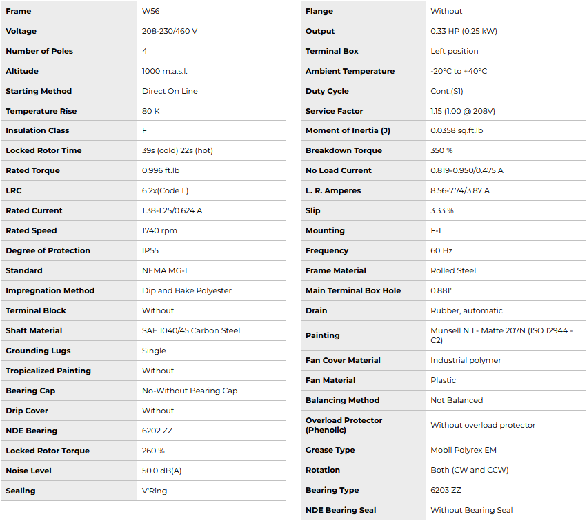 TF.33404W01DOE, Rolled Steel Premium Efficiency 0.33Hp 1740 Rpm 4P W56 3Ph 208-230/460//190-220/380-415 V 60 Hz IC411 - TEFC - Foot-mounted