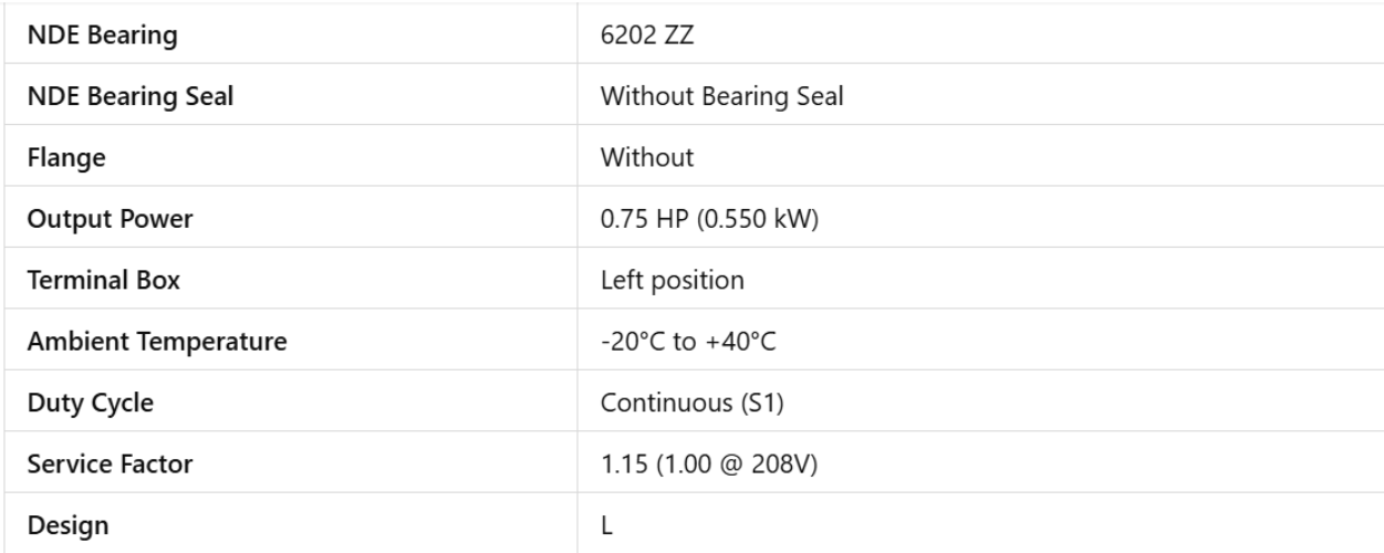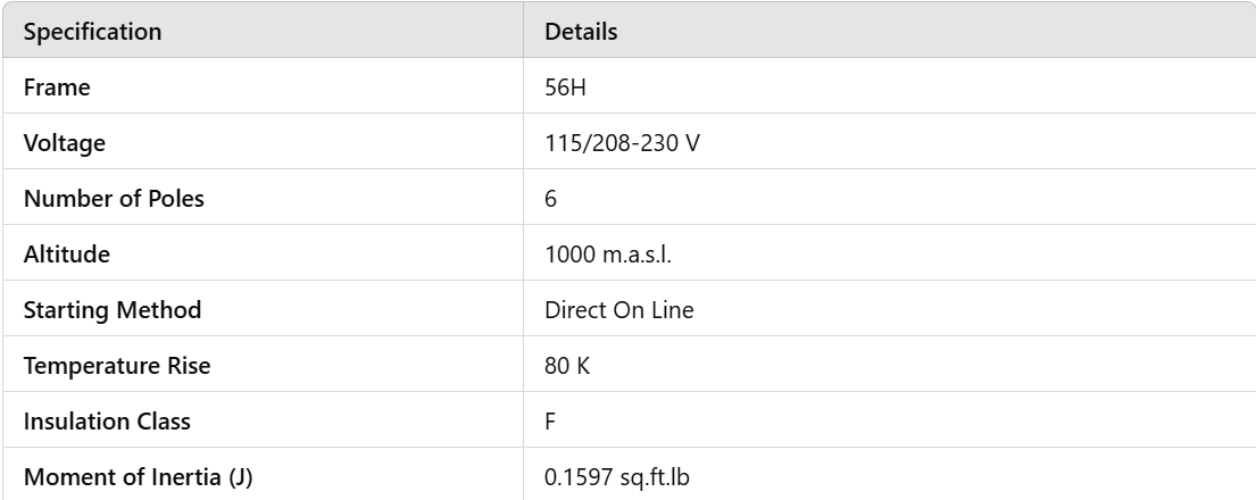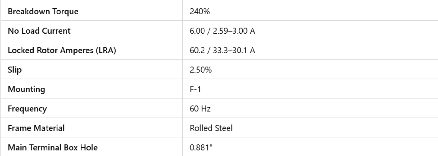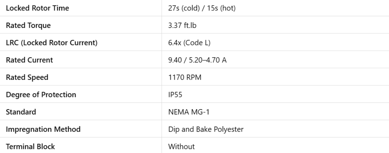 Locked Rotor Time 27s (cold) / 15s (hot)
