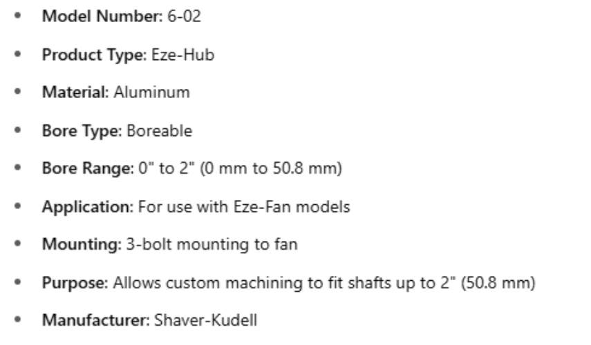 Each size and style of fan will fit many interchangeable bore sizes. This will keep your inventory to a minimum.