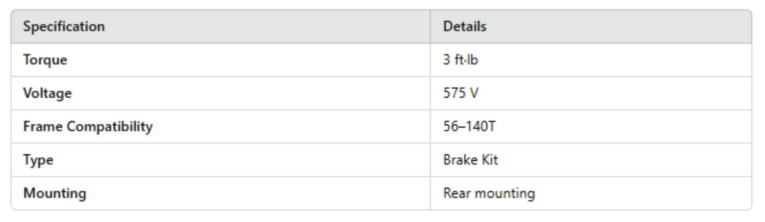 964224, 3 FT/LB, 575 VOLT, 56-140T Brake Kit