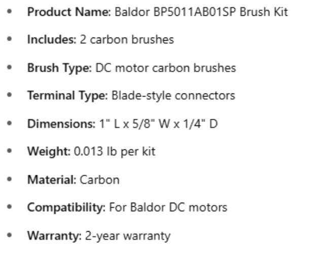 Product Name: Baldor BP5011AB01SP Brush Kit