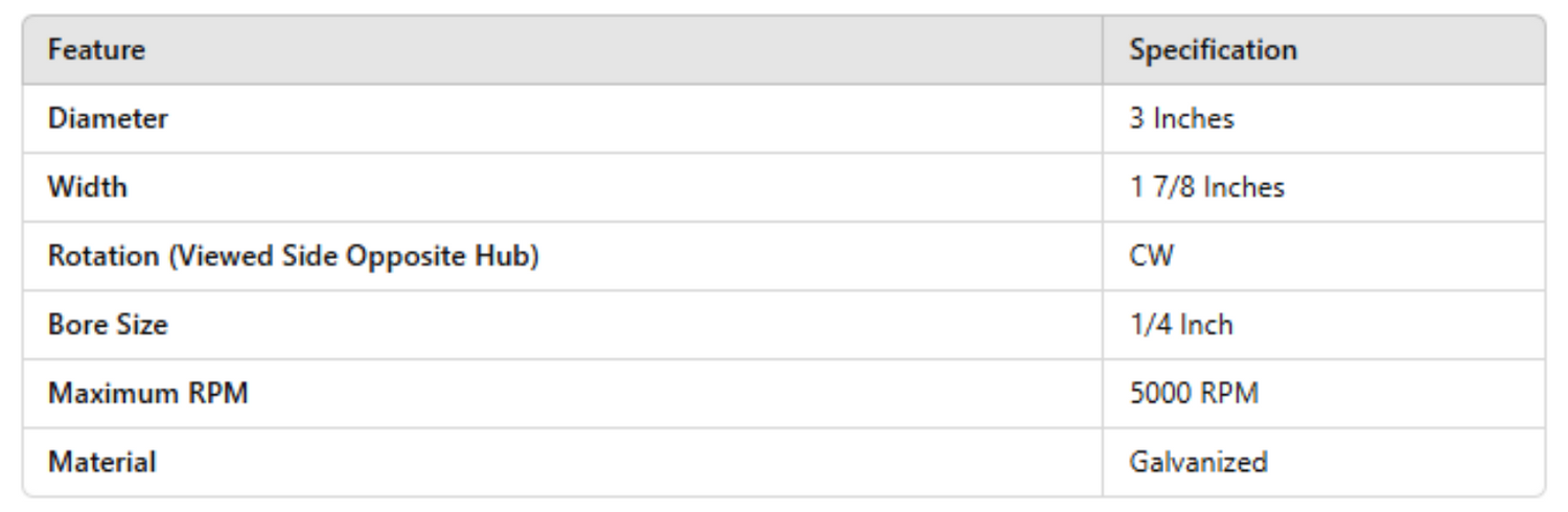 1-6038, Single Inlet Blower Wheel, 1 7/8 W, CW, 5000 RPM