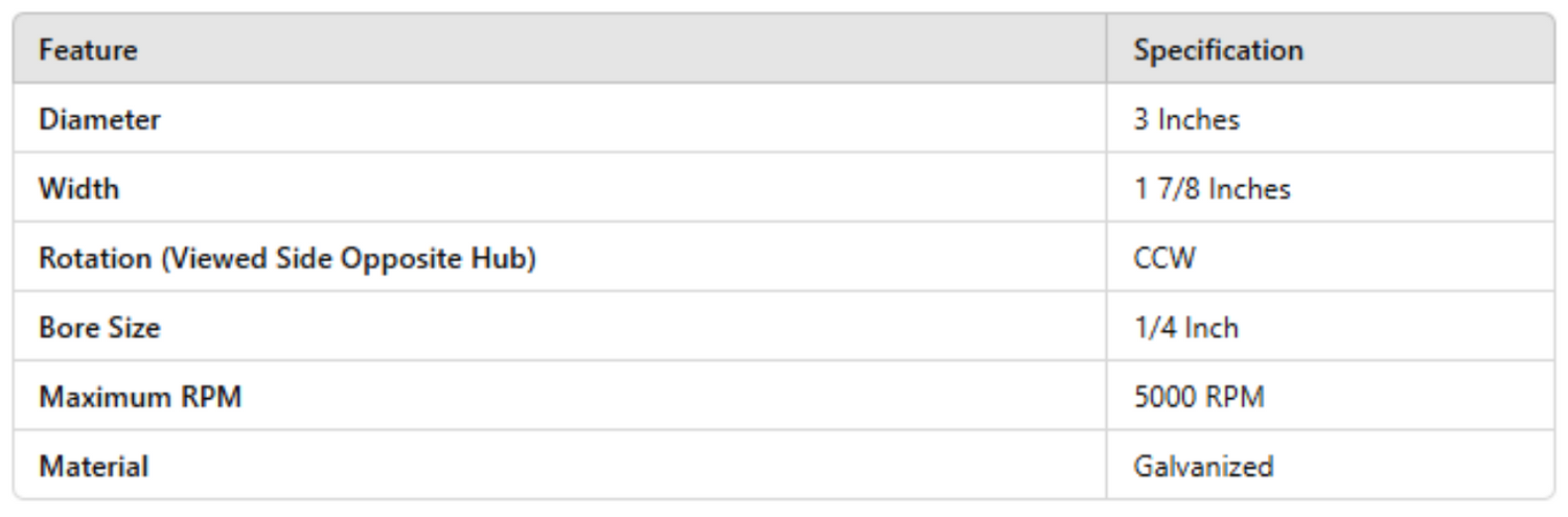 1-6039, Single Inlet Blower Wheel, 1 7/8 W, CCW, 5000 RPM