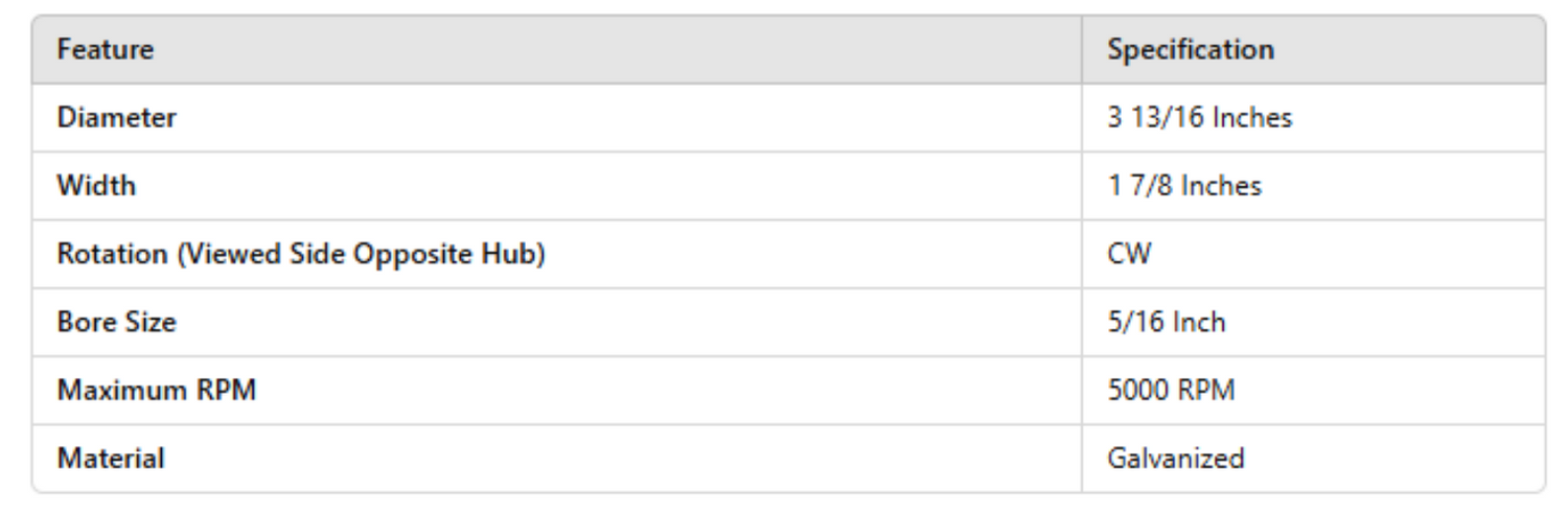 1-6043, Single Inlet Blower Wheel, 1 7/8 W, CW, 5000 RPM