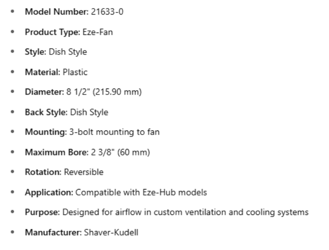 21633-0, Plastic Eze-Fan - 8 1/2"( 215.90 mm ) Dish Style
