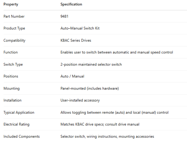 9481, KBAC Auto - Manual switch kit est en rupture de stock et sera expédié dès qu’il sera de retour en stock.
