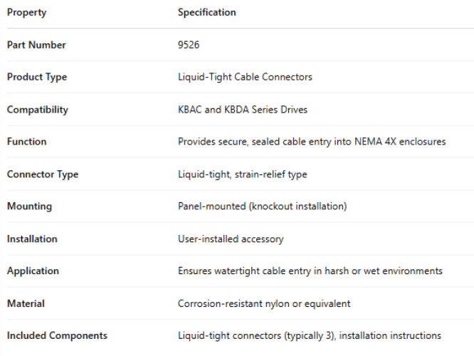 Included Components Liquid-tight connectors (typically 3), installation instructions
