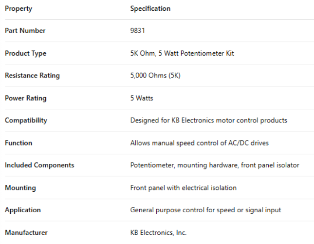 Compatibility Designed for KB Electronics motor control products