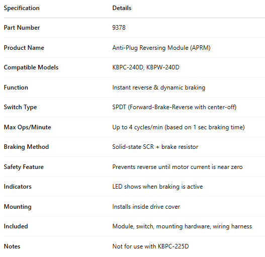 9378, KBPC, KBPW Anti-Plug Reversing Module