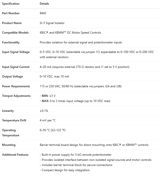 9443, KBIC SI-5 Signal Isolator est en rupture de stock et sera expédié dès qu’il sera de retour en stock.