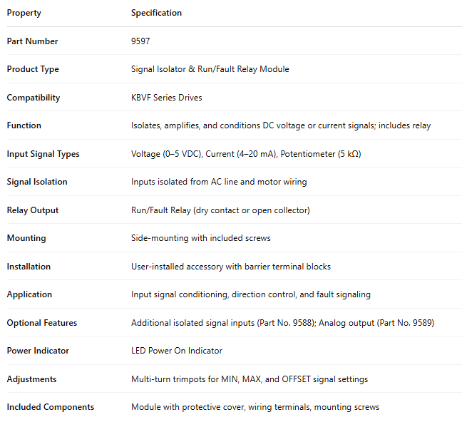 9597, KBVF SIVR Signal Isolator & Run / Fault Relay
