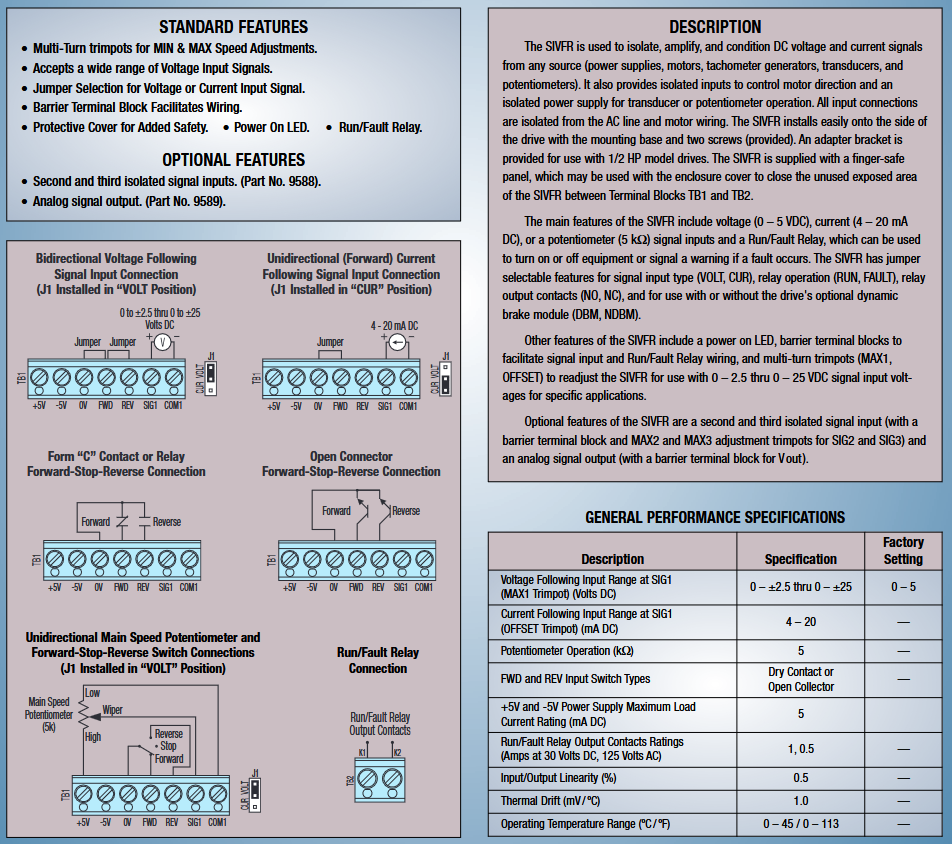 Input Signal Types Voltage (0–5 VDC), Current (4–20 mA), Potentiometer (5 kΩ)