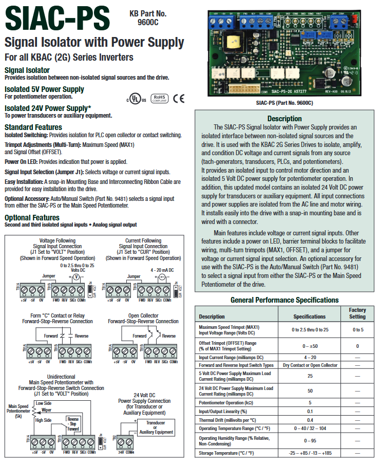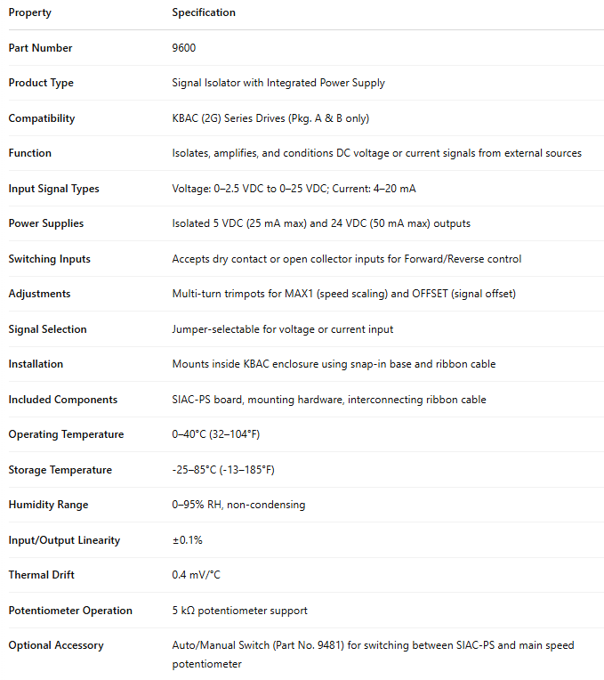 9600, KBAC SIAC-PS (2G) Signal Isolator with P.S. (Pkg. A & B only)
