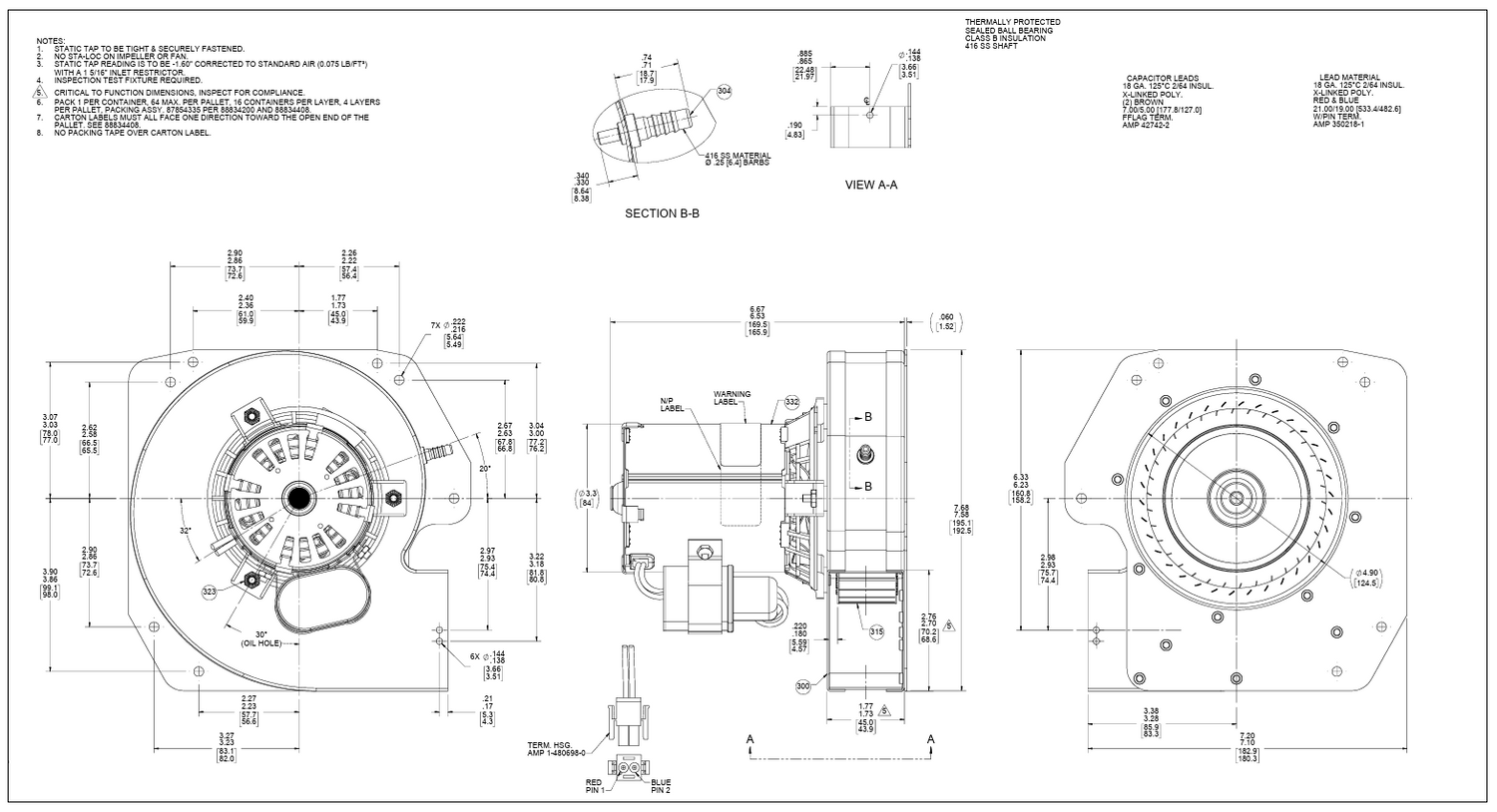 A330, OEM Replacement Draft Inducer Blower , 3200 RPM, 208-230V, Rectangular Outlet, Flange: No, 70625926