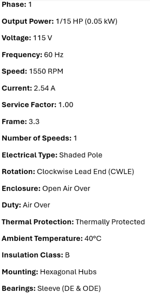 • Electrical Type: Shaded Pole