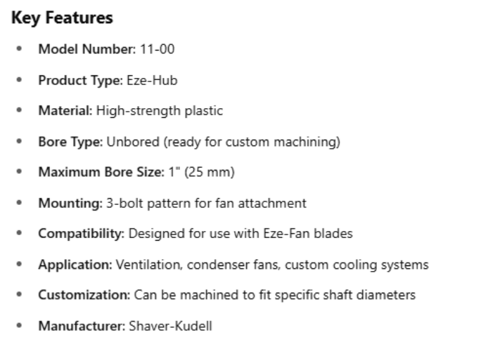 All our fans are made to be assembled using the Eze-Hub®. These hubs are taper locked upon assembly and allow for installation and removal without any damage to the fan or shaft. The hubs can be bought separately and are available in a variety of metric or standard bore sizes to satisfy your customers needs.