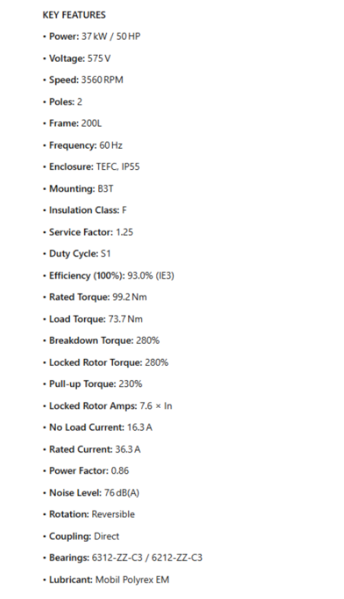 16928142, W22 IE3 Premium Efficiency, 50Hp(37kW),575V,3560 Rpm,200L, TEFC, IP55
