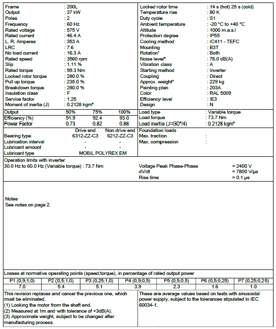 16928142, 1078940638, Weg, Mod: TE1B0X0X, CC029A, W22 IE3 Premium Efficiency, 50Hp (37 kW), 575V, 3560 RPm, 200L, TEFC, IP55