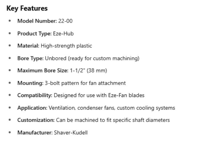 22-00, Plastic Eze-Hub - Unbored est en rupture de stock et sera expédié dès qu’il sera de retour en stock.