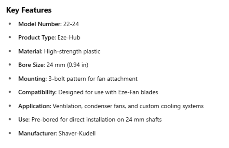 All our fans are made to be assembled using the Eze-Hub®. These hubs are taper locked upon assembly and allow for installation and removal without any damage to the fan or shaft. The hubs can be bought separately and are available in a variety of metric or standard bore sizes to satisfy your customers needs.
