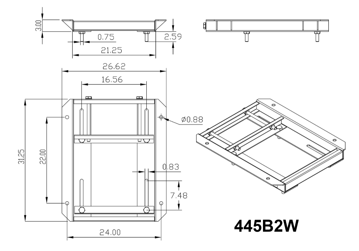 445B2W, Steel Double Adjustable Slide Base motor Frame: 445T/445TS,  Base - Style B2 NEMA