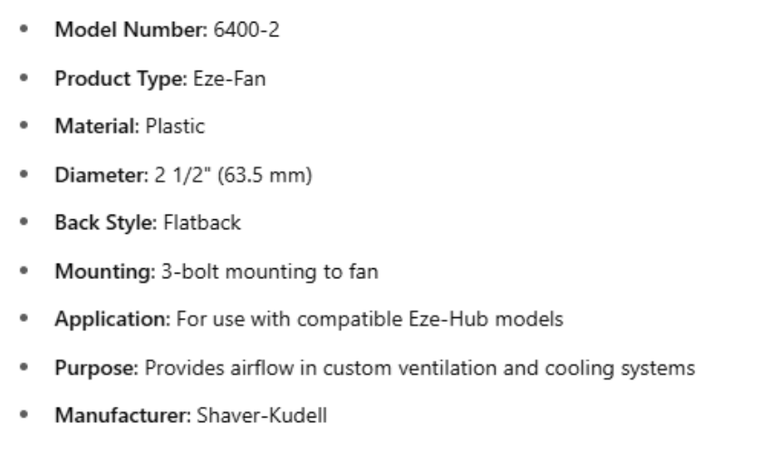 • Purpose: Provides airflow in custom ventilation and cooling systems