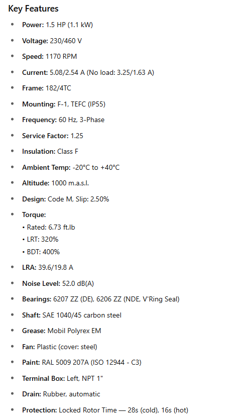 Frequency: 60 Hz, 3-Phase