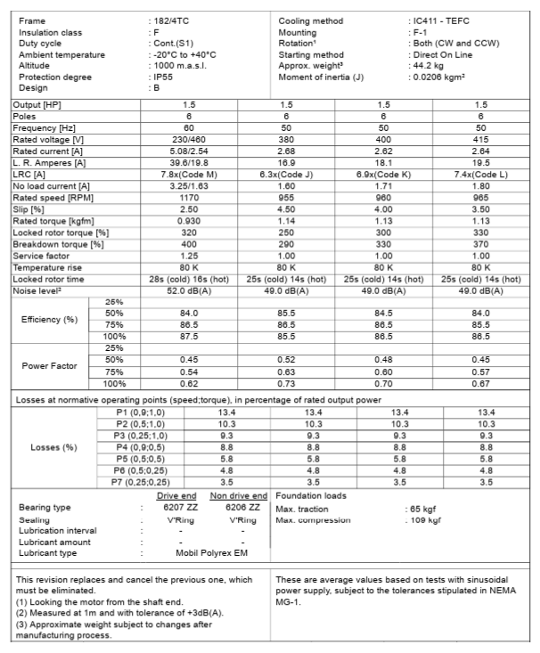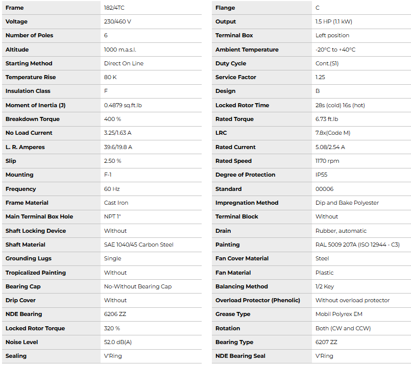 CT001406NPW22, W22 NEMA Premium Efficiency 1.5Hp 1170 RPM 6P 182/4TC 3Ph 230/460//380 V 60//50 Hz IC411 - TEFC - Foot-mounted