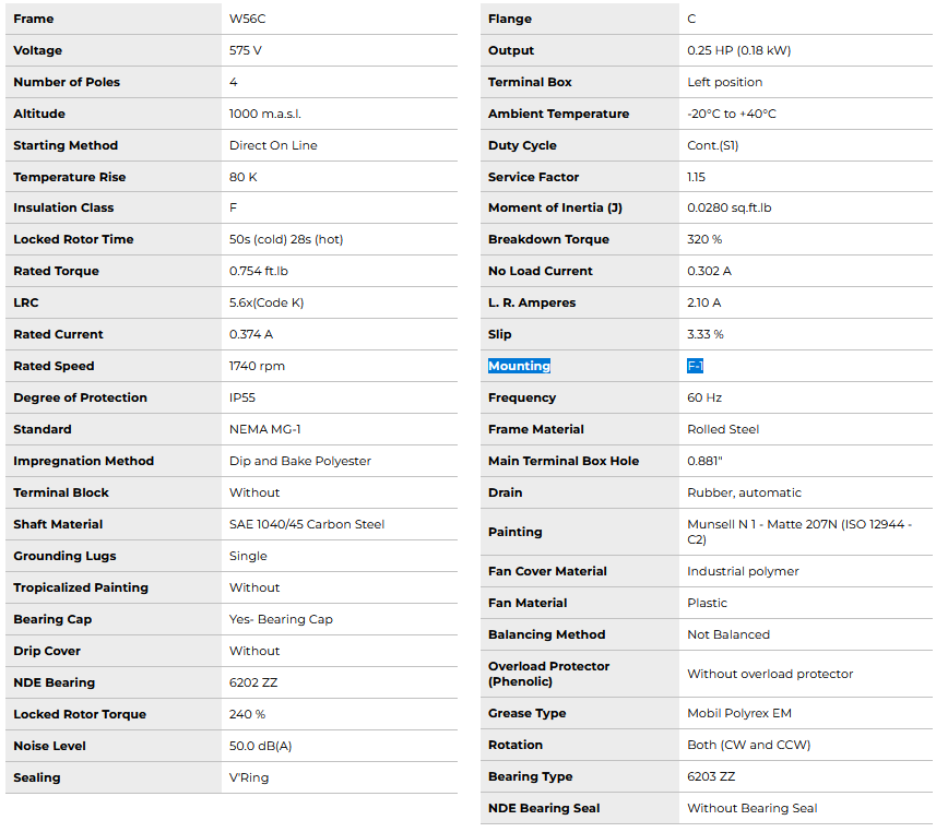FC.25504W01DOE, Rolled Steel Premium Efficiency 0.25Hp 4P W56C 3Ph 575 V 60 Hz IC411 - TEFC - Foot-mounted