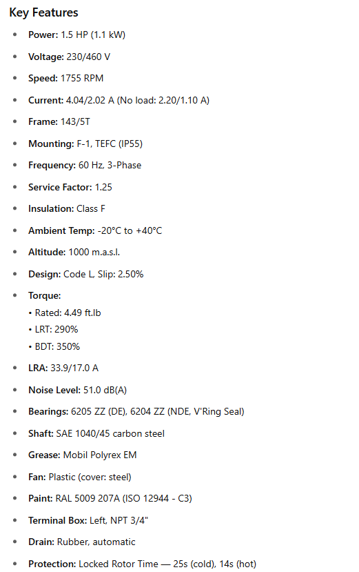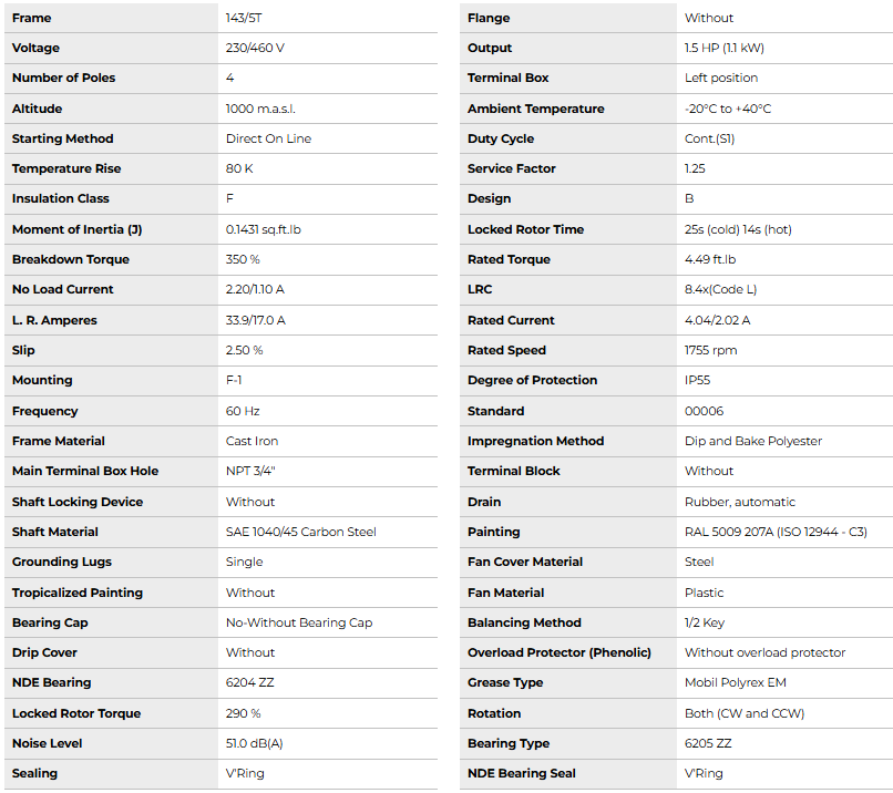 HT001404NPW22, W22 NEMA Premium Efficiency 1.5Hp 1755 RPM 4P 143/5T 3Ph 230/460//380 V 60//50 Hz IC411 - TEFC - Foot-mounted