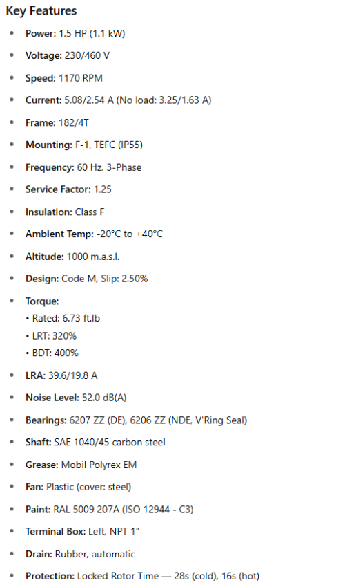 Bearings: 6207 ZZ (DE), 6206 ZZ (NDE, V'Ring Seal)