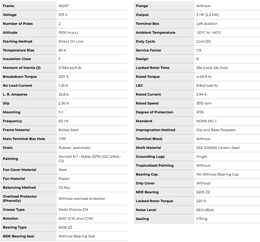 HT003502NPW01,  Rolled Steel NEMA Premium Efficiency 3Hp 3515 Rpm 2P 182/4T 3Ph 575 V 60 Hz IC411 - TEFC - Foot-mounted