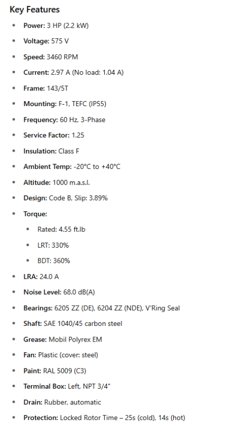 Frequency: 60 Hz, 3-Phase