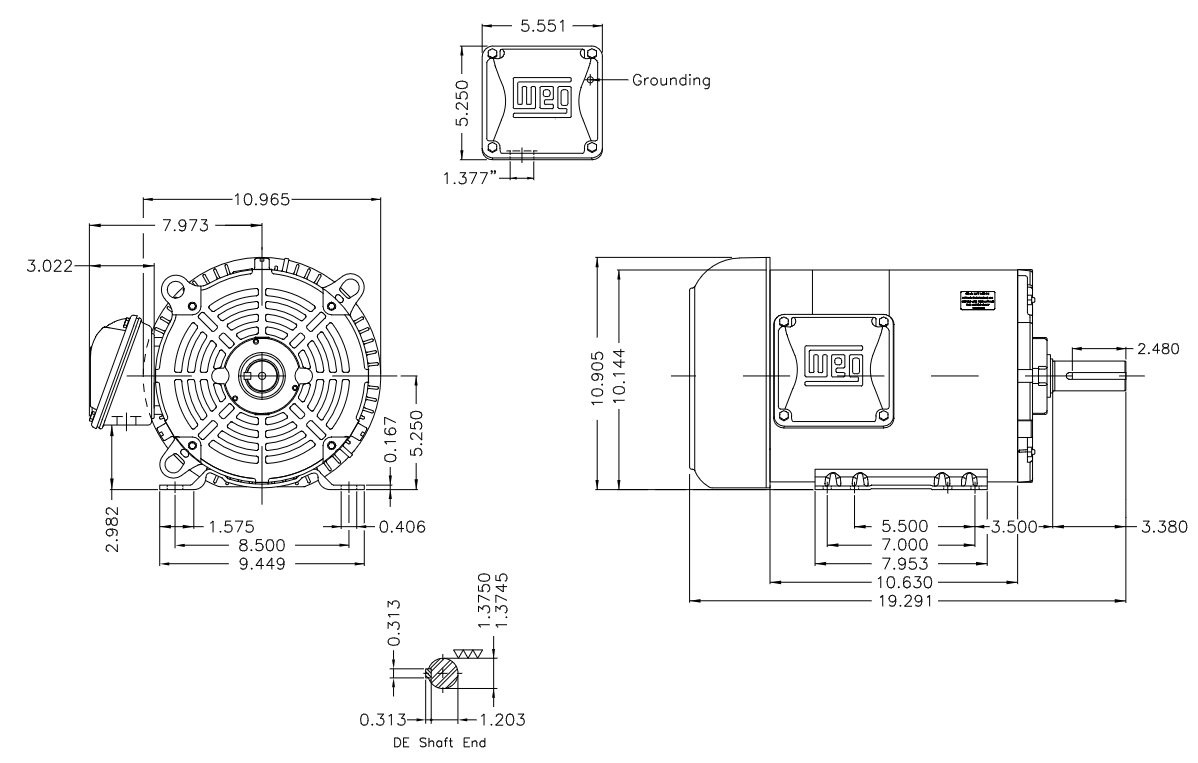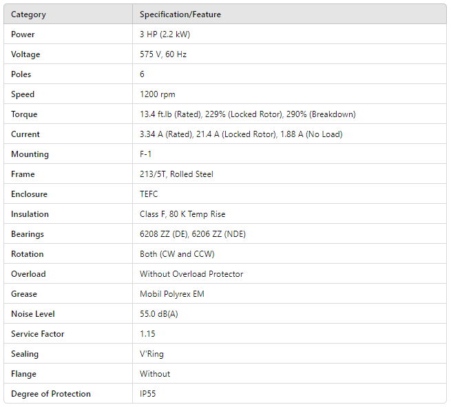 HT003506NPW01, Rolled Steel NEMA Premium Efficiency 3Hp 1175 Rpm 6P 213/5T 3Ph 575 V 60 Hz IC411 - TEFC - Foot-mounted