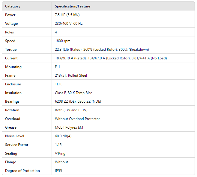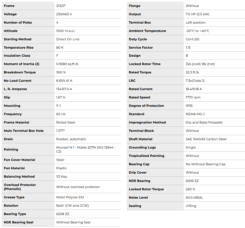 HT007404NPW01, Rolled Steel NEMA Premium Efficiency 7.5Hp 1770 Rpm 4P 213/5T 3Ph 230/460//190-220/380-415 V 60 Hz IC411 - TEFC - Foot-mounted