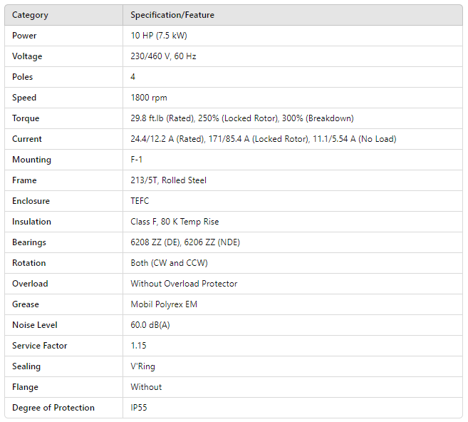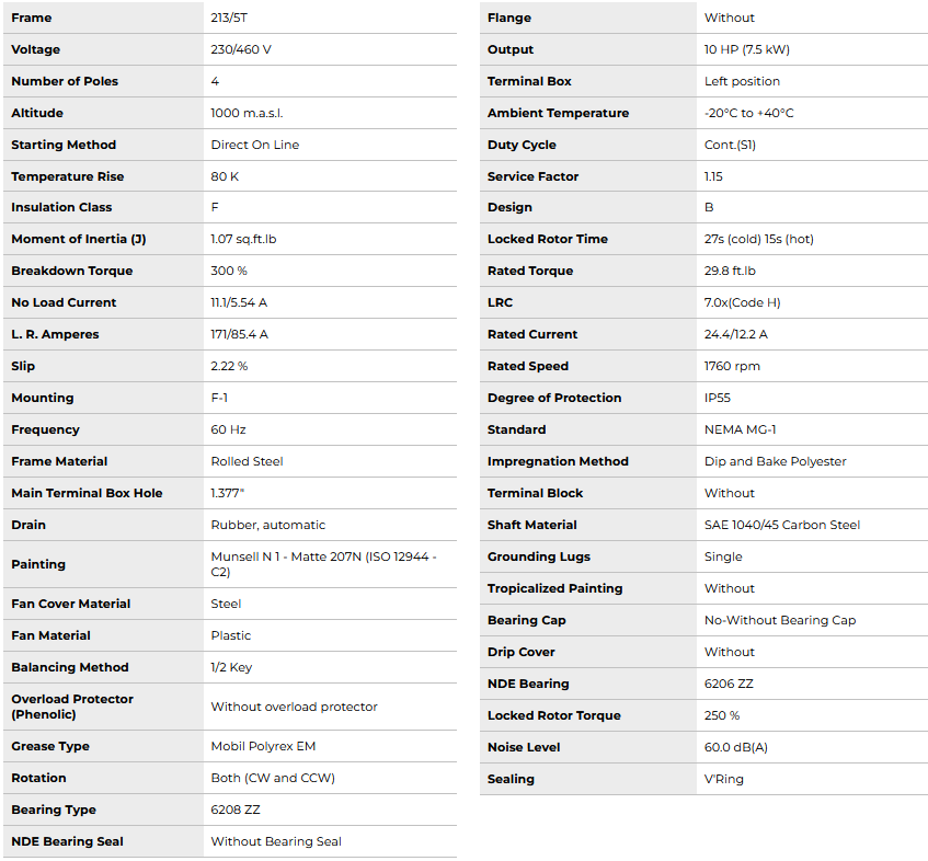 HT010404NPW01, Rolled Steel NEMA Premium Efficiency 10Hp 1760 Rpm 4P 213/5T 3Ph 230/460//190-220/380-415 V 60 Hz IC411 - TEFC - Foot-mounted