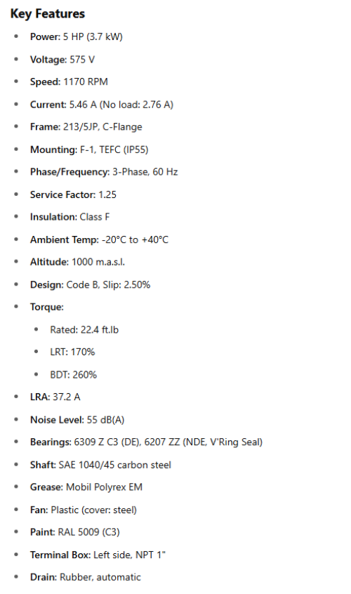 Bearings: 6309 Z C3 (DE), 6207 ZZ (NDE, V'Ring Seal)