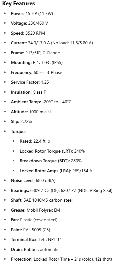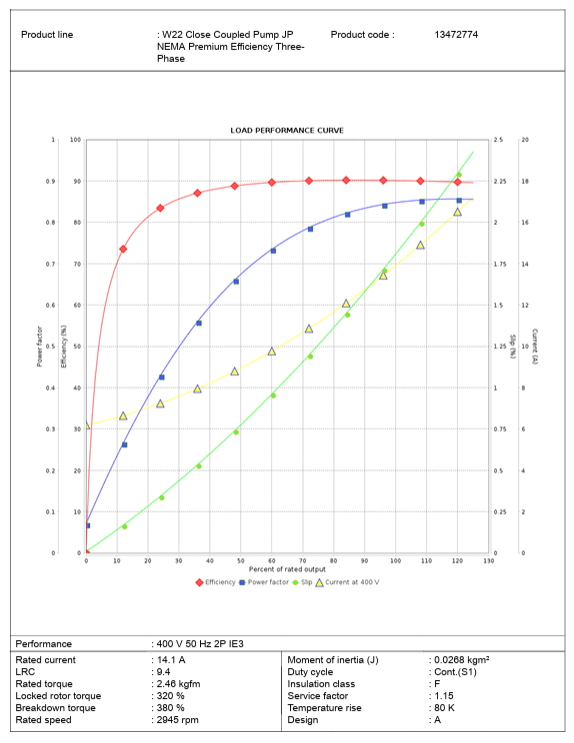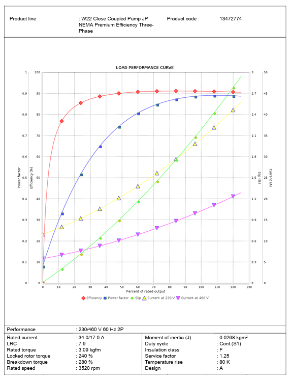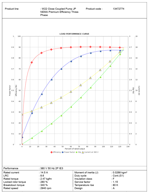 JP015402NPW22215JP, W22 Close Coupled Pump JP NEMA Premium Efficiency 15Hp 3520 RPM 2P 213/5JP 3Ph 208-230/460//380 V 60//50 Hz IC411 - TEFC - Foot-mounted