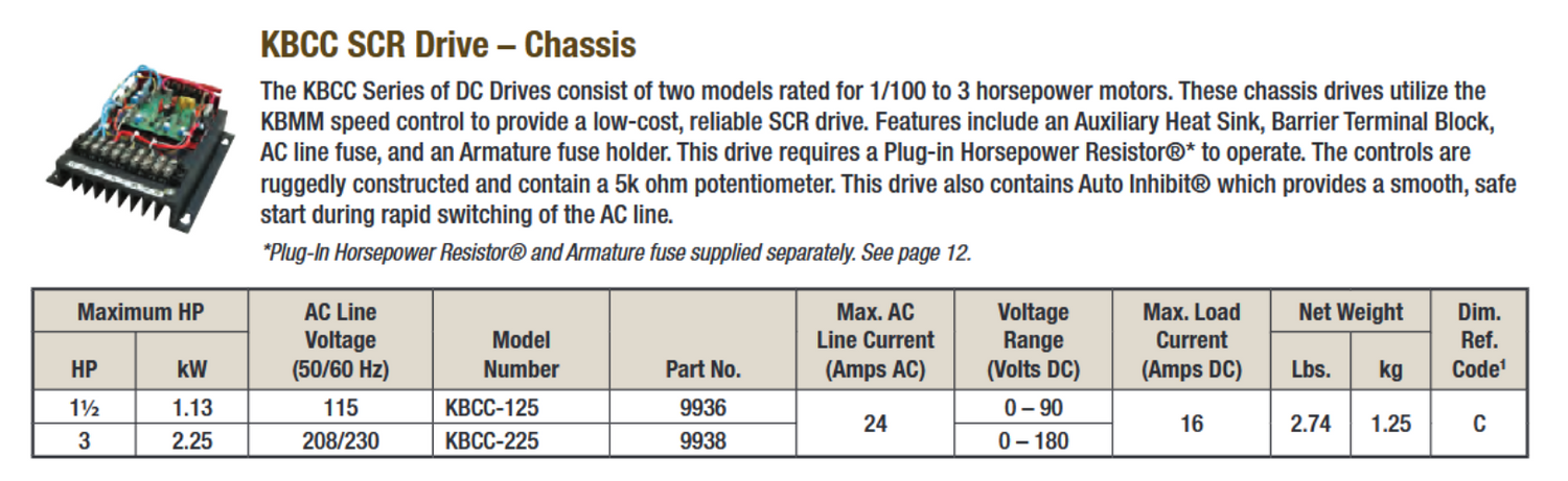 KBMM speed control to provide a low-cost, reliable SCR drive. Features include an Auxiliary Heat Sink, Barrier Terminal Block,