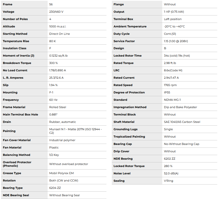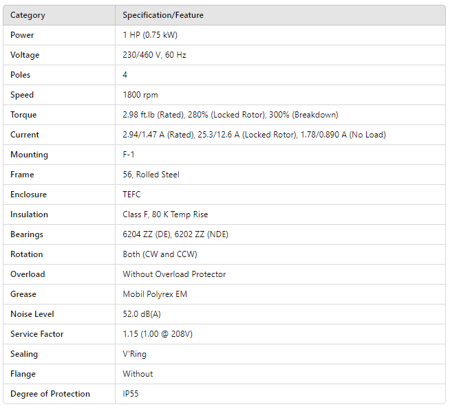 TF000404W01DOE, Rolled Steel Premium Efficiency 1Hp 1765 Rpm 4P 56 3Ph 230/460//190-220/380-415 V 60 Hz IC411 - TEFC - Foot-mounted